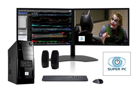Desktop-class CPUs and graphics processors are simply more powerful than their mobile counterparts for the same money. They give you the power to finish whatever task you're working on in less time. Desktop components are less expensive in general, so instead of buying a 0 laptop with a competent Intel Atom processor, you can buy a 0 desktop with a powerful Intel Core i5 desktop CPU in it.You can get desktops with screens that are already built in, or they can be connected externally to a monitor. In either case, you're almost guaranteed to have a bigger display than even the largest desktop-replacement laptop, which tops out at about 18 inches in size. Another plus is that expandable desktops can accommodate multiple graphics cards to support more than two simultaneous displays.For some sensitive situations, buying a desktop gives you physical control of the computer and its use. Limiting access to desktop PCs lets you control who sees confidential business data, and the combination of a desktop PC and a large screen means that parents can monitor what their children are doing online via a quick glance across the room.SUPER PC | Two Monitor Computer and Dual LED Display Array | Complete System Package! will help your job easier dexPremium Quality Hardware and No Cheap Parts: Unlike the mainstream computer companies, we only use premium brand computer hardware inside of our SUPER PC machines. You won't find cheap aluminum power supplies and other flimsy hardware in our systems. Upon comparison, you can literally see and feel the obvious difference in hardware quality that is on the inside and outside of our extraordinary computers!